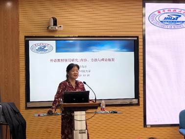 随后,徐教授对外语教材使用研究的主要方法进行了概述,涵盖定量、定性及混合研究路径,强调研究方法的科学性和透明性。在此基础上,徐教授进一步阐述了教材使用研究的选题来源,从教学实践问题、教材研究期刊专栏、知名学者研究动向到国家教育政策解读等均可成为选题切入点。她强调,研究者应关注教师教材使用策略、学习者教材使用行为以及数字教材与AI赋能等新议题,以应对当前外语教育改革战略需求。